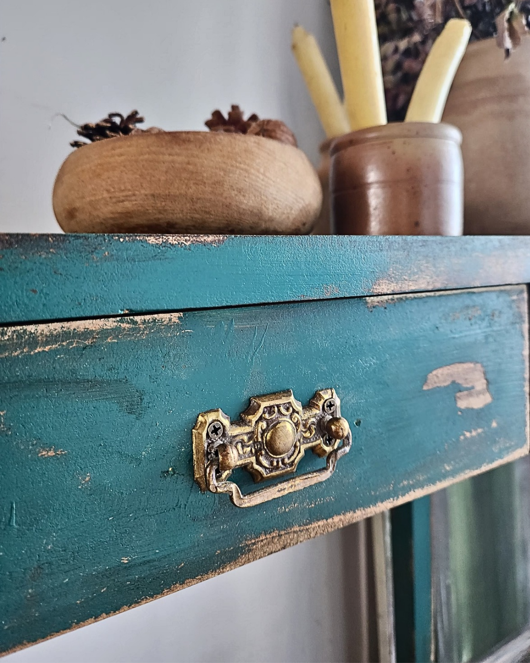 Le vert, couleur incontournable , s’invite dans votre intérieur avec cette console à la patine verte 💚.