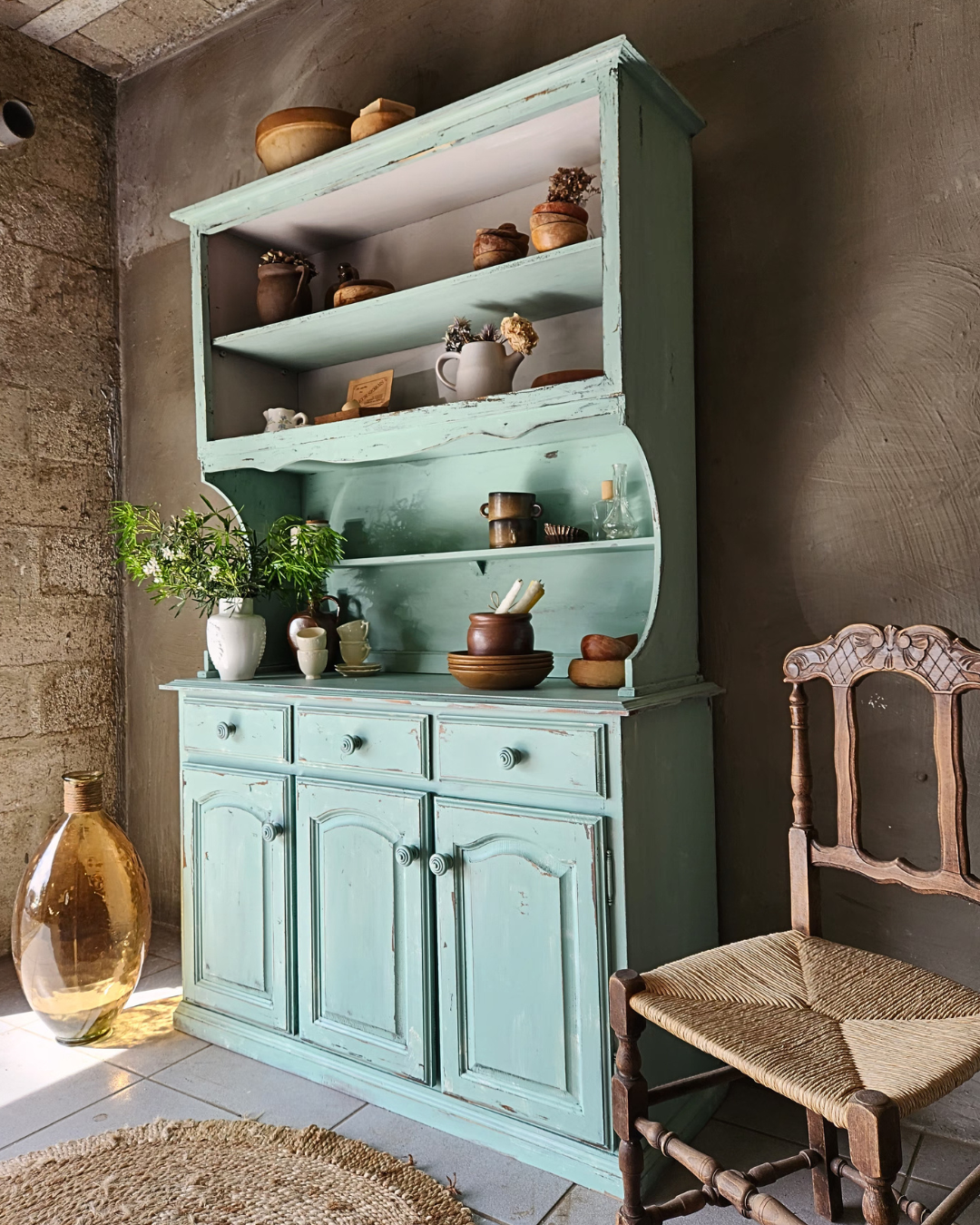 Bel espace de rangement, 1 etagere en bas, 3 portes, et le haut du vaisselier pour y exposer la vaisselle, deco...
